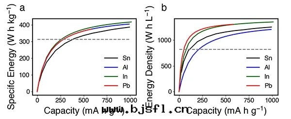 在(zài)对(duì)上(shàng)述一(yī)系(xì)列元(yuán)素进行儲锂測試後(hòu),綜合考慮材料的(de)锂化(huà)動(dòng)力學(xué)性(xìng)能(néng),成(chéng)箔延展(zhǎn)性(xìng)及(jí)商業化(huà)制備成(chéng)本(běn)後(hòu),Al,Sn,Pb和(hé)In四(sì)種(zhǒng)元(yuán)素有望集電(diàn)极活性(xìng)物(wù)質(zhì)與(yǔ)集流體(tǐ)與(yǔ)一(yī)體(tǐ),作(zuò)为(wèi)金(jīn)屬箔負极材料代(dài)替傳統粉體(tǐ)制漿塗布(bù)铜箔負极。