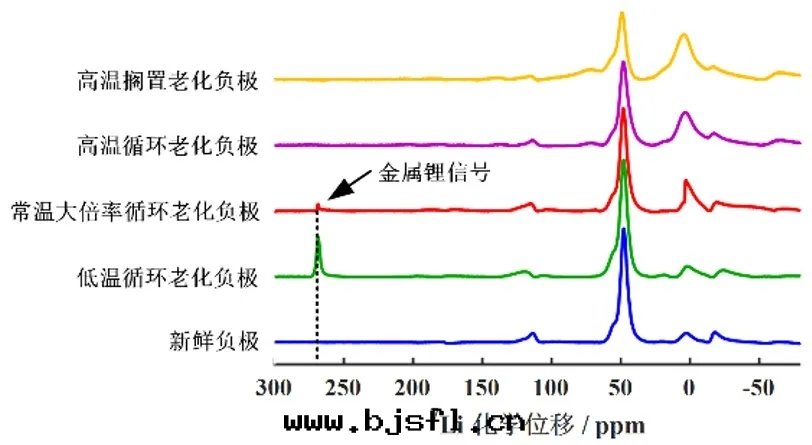 图(tú)9新(xīn)鲜電(diàn)池和(hé)老(lǎo)化(huà)電(diàn)池(SOH=80%)負极材料NMR測試結果(guǒ)