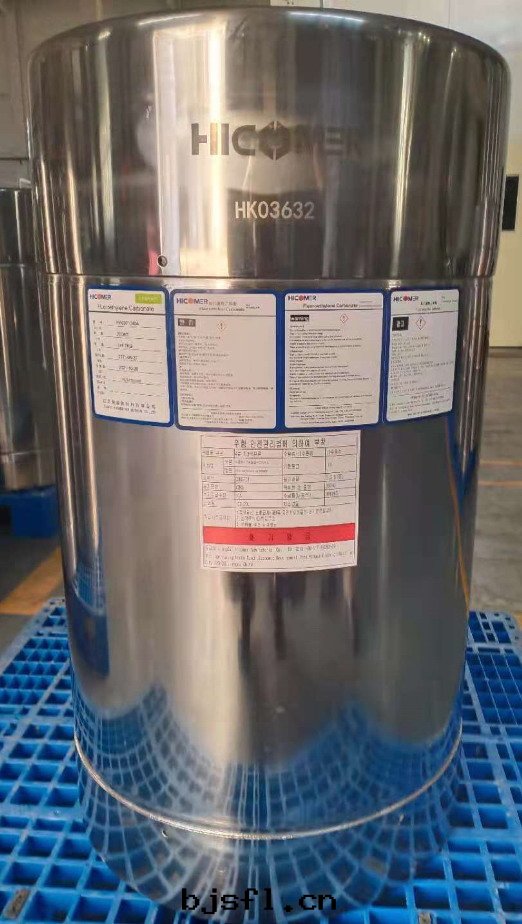 | 産品簡写(xiě) | 産品名(míng)稱 | 化(huà)學(xué)結構式 |  | | FEC | 氟代(dài)碳酸(suān)乙烯酯 | | 分(fēn)子式 | C3H3FO3 | | 分(fēn)子量(liàng) | 106.05 | | CAS | 114435-02-8 |  | 物(wù)理(lǐ)性(xìng)質(zhì) | 密度(dù)(25℃,g/cm3) | 1.494 | | 折光(guāng)率(25℃) | 1.4538 | | 熔點(diǎn)(℃) | 19-20 | | 沸點(diǎn)(℃) | 210 | | 閃點(diǎn)(℃) | 101.7 | | 質(zhì)量(liàng)指标(biāo) | 色(sè)度(dù)(APHA) | ≤10 | | 纯度(dù)(%),GC | ≥99.95 | | 水(shuǐ)分(fēn)(ppm) | ≤10 | | Cl-(ppm) | ≤1 | | 酸(suān)值(ppm,以(yǐ)HF計(jì)) | ≤10 | | 功能(néng)介紹 | 提高(gāo)電(diàn)解(jiě)液的(de)低(dī)温(wēn)性(xìng)能(néng),提高(gāo)電(diàn)解(jiě)液的(de)閃點(diǎn),增強(qiáng)電(diàn)解(jiě)液的(de)循环(huán)性(xìng)能(néng),且(qiě)具備良好(hǎo)的(de)阻燃性(xìng)。 |